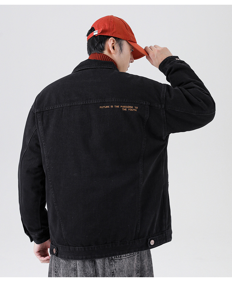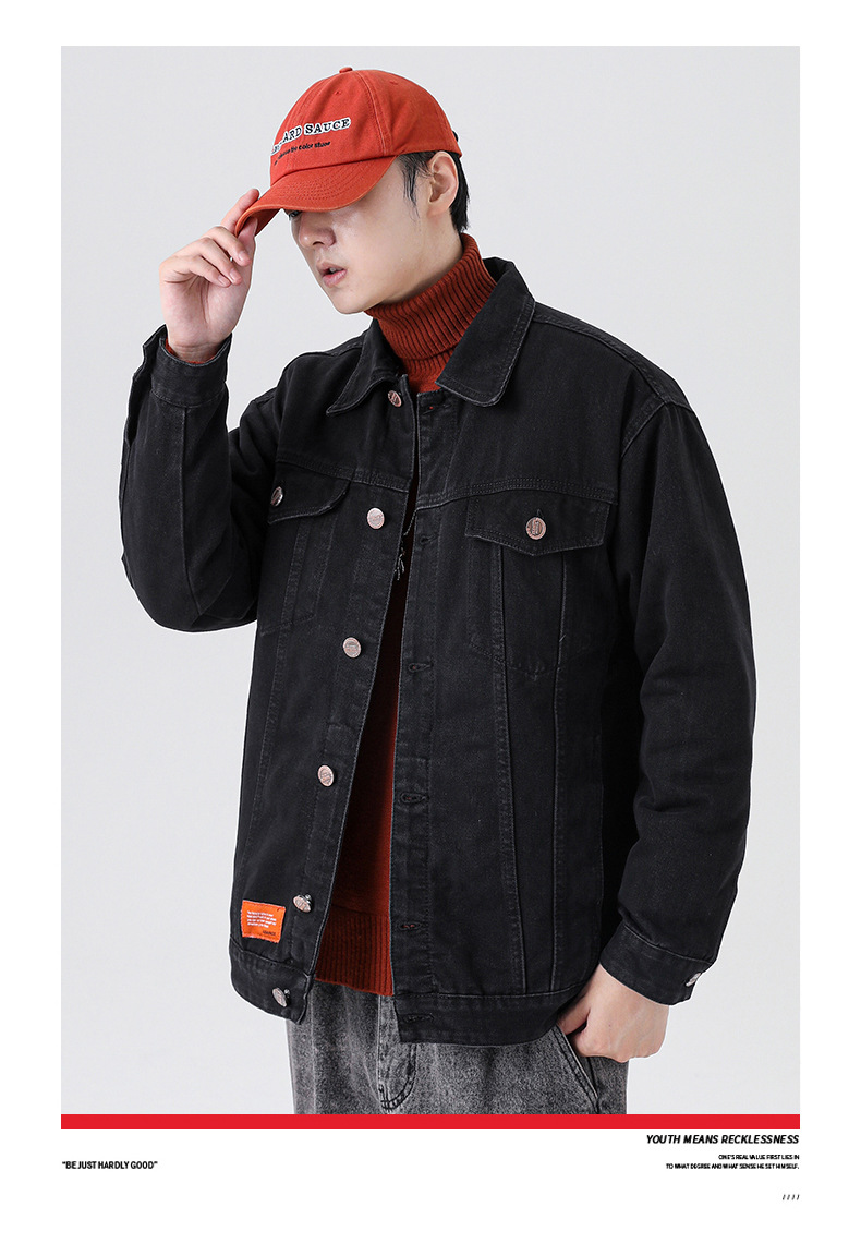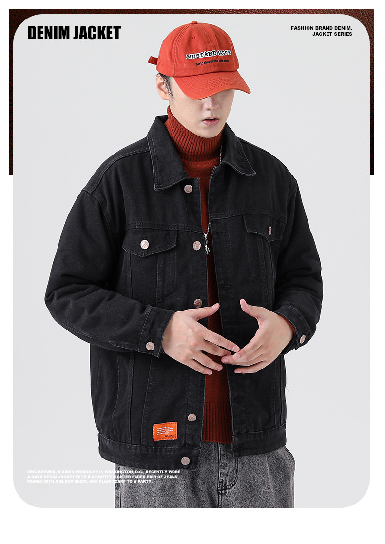 厂家直销加厚男士复古牛仔外套,宽松版型,秋季保暖,耐磨绒面,日常休闲风格