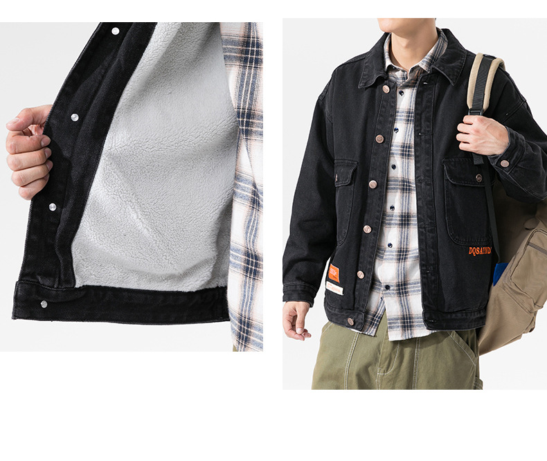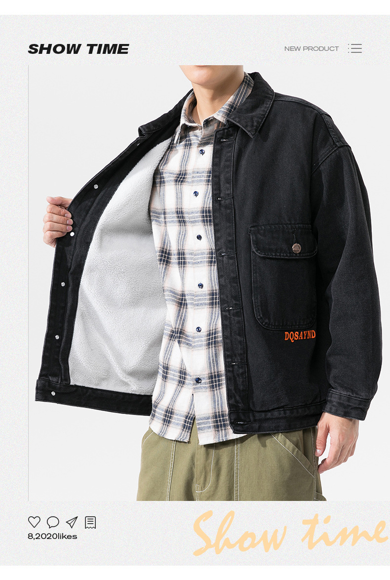 厂家直销青年加厚加绒保暖牛仔外套,时尚宽松型,冬季休闲,高级感设计