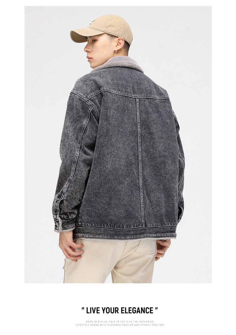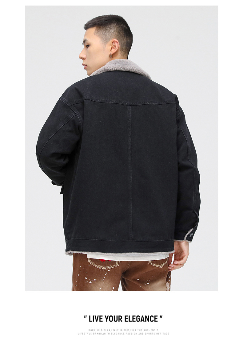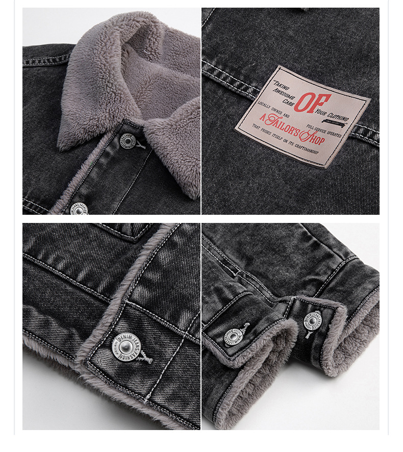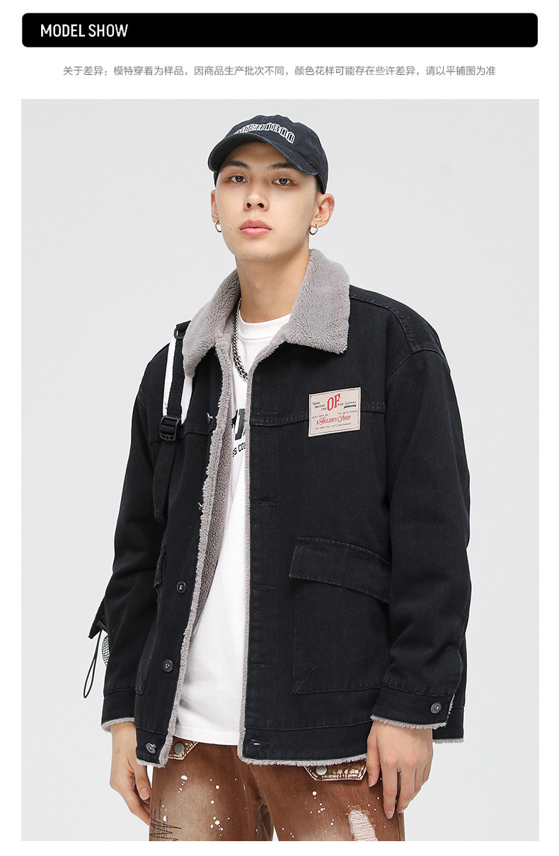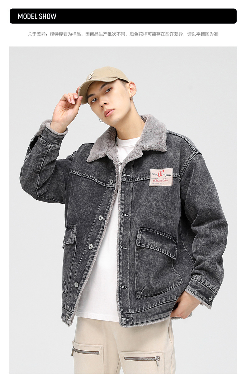 厂家直销男士宽松复古黑白拼色牛仔外套,冬季休闲风格,耐磨立体大口袋设计