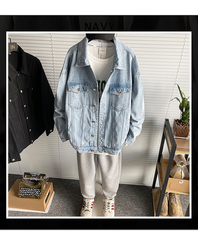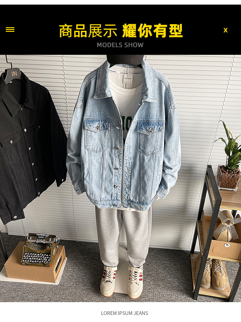 厂家直销青年男士宽松加厚牛仔外套,休闲高街风,耐磨保暖设计