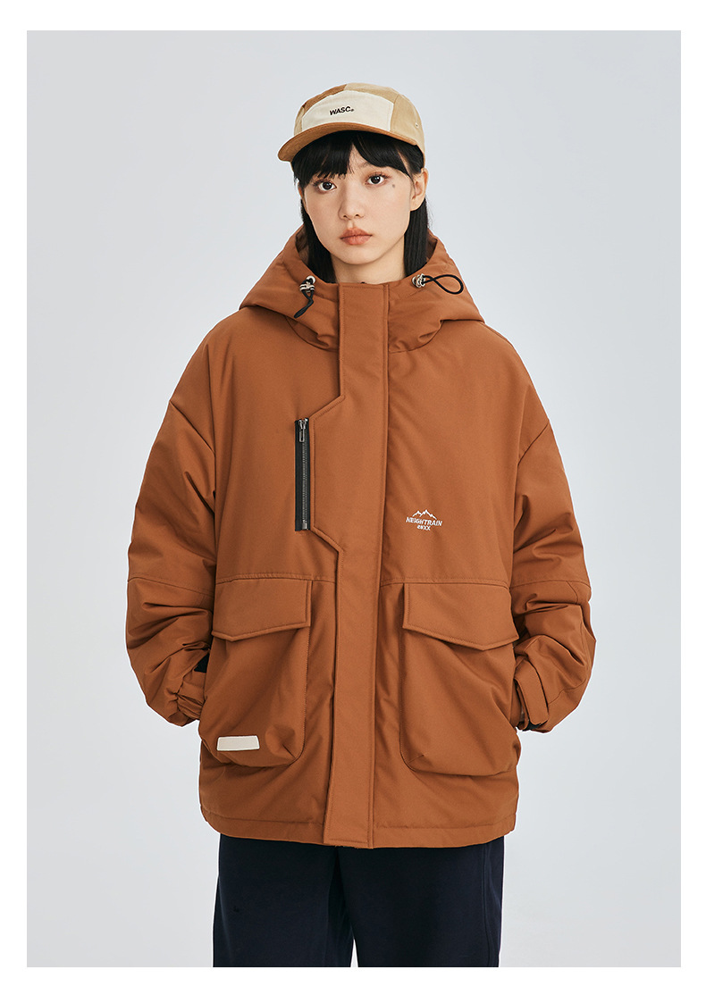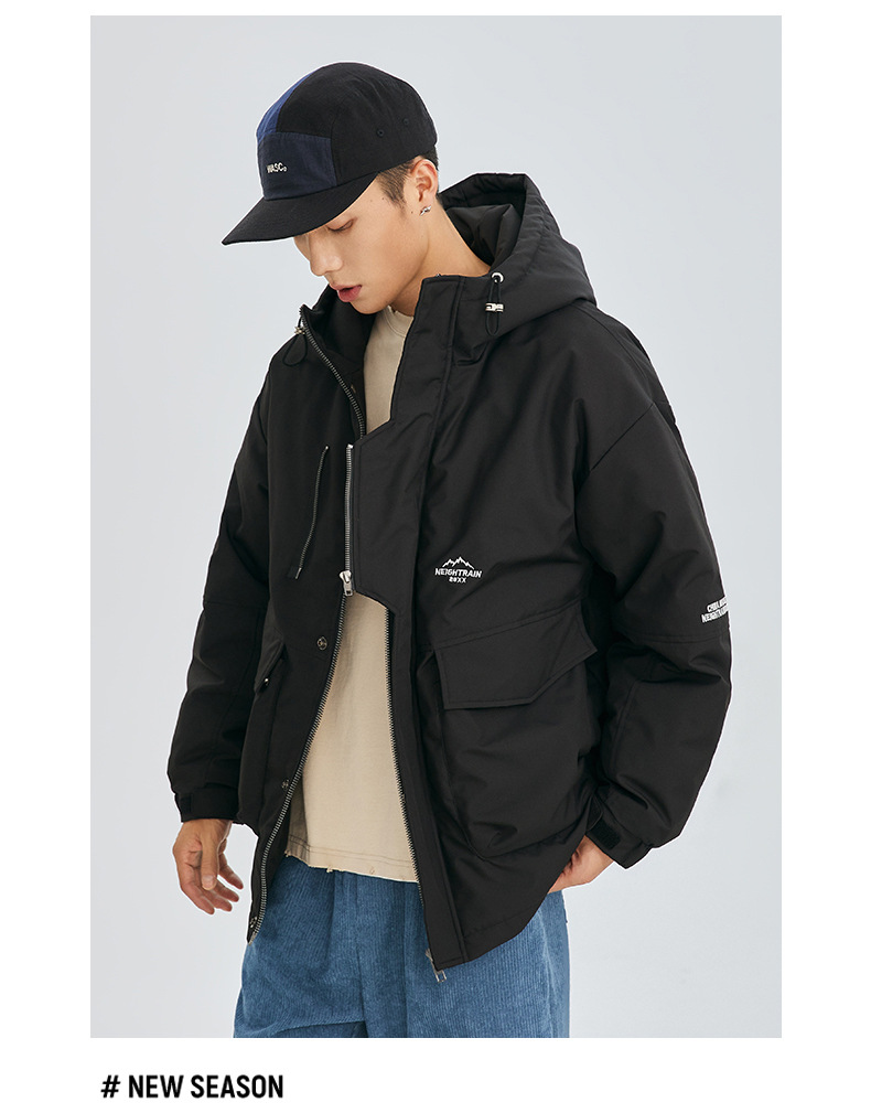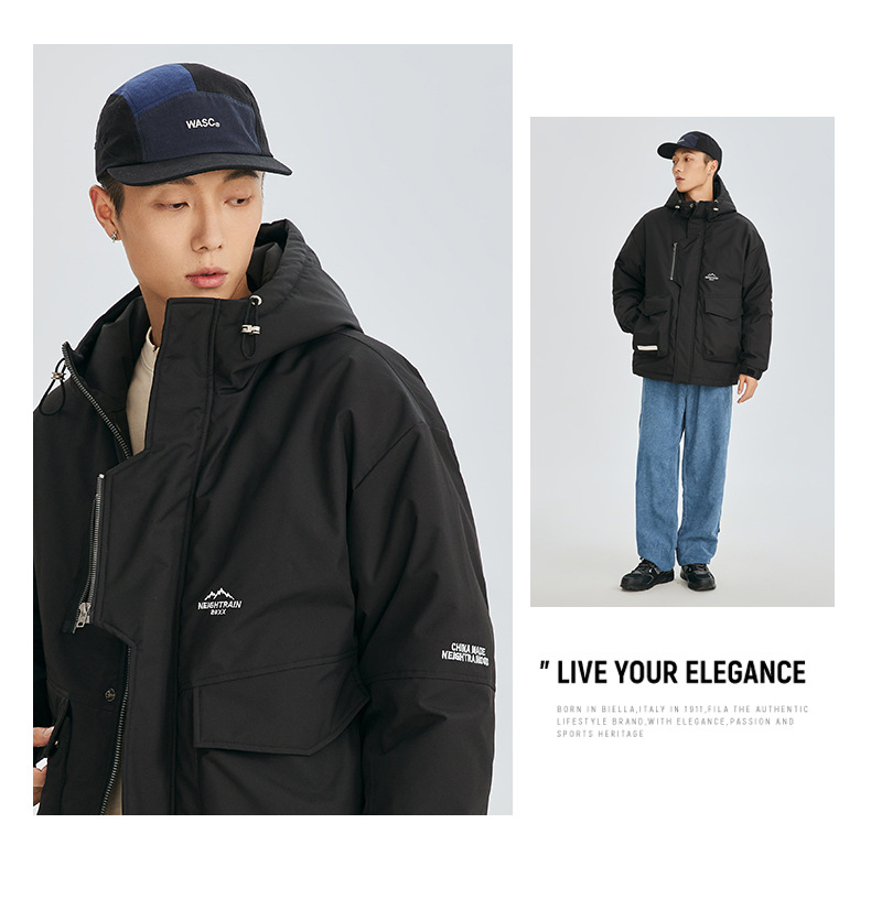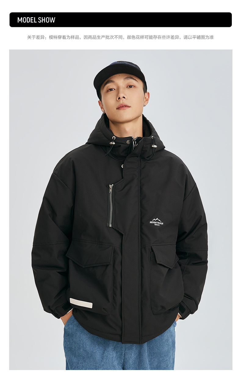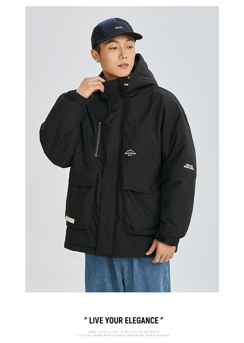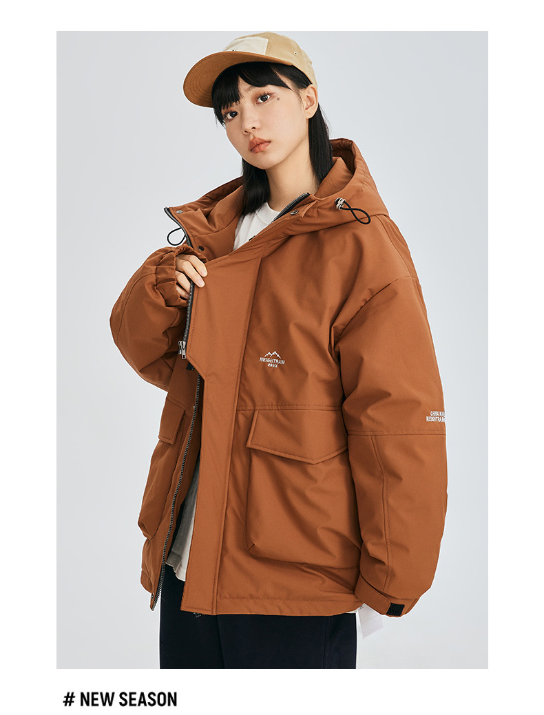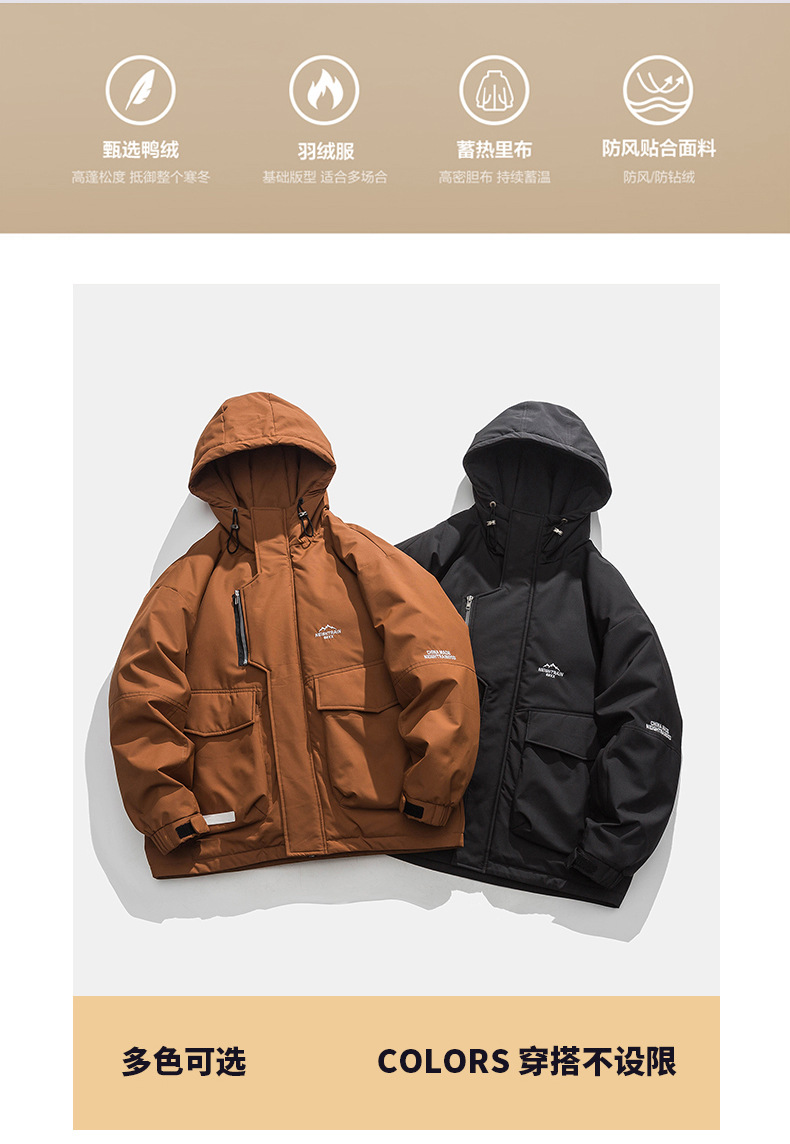 厂家直销青少年宽松白鸭绒连帽外套,冬季加厚日系复古款,防寒保暖,休闲风格