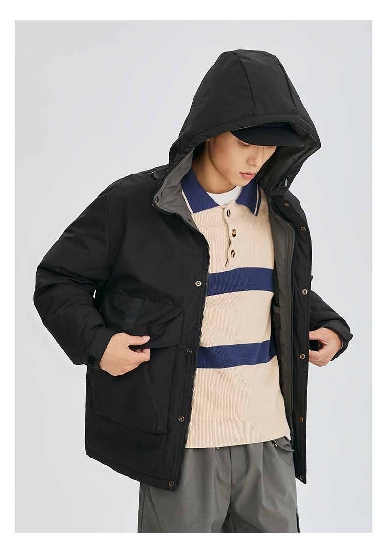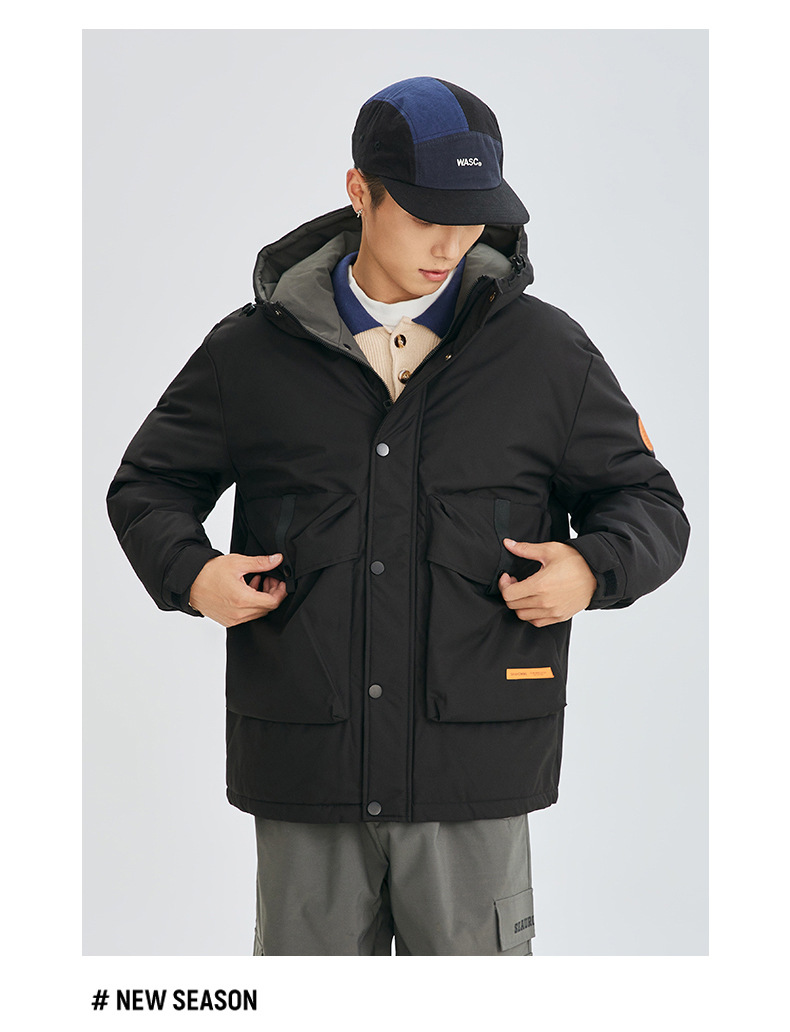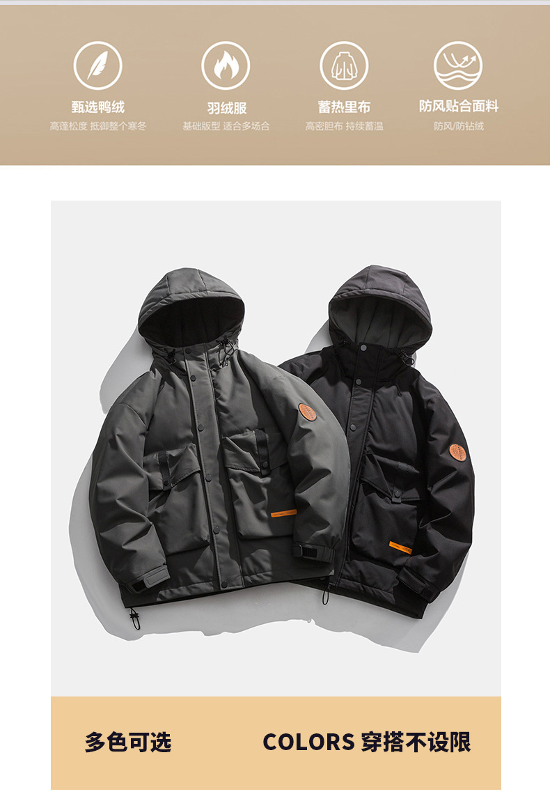 厂家直销男士加厚防风连帽羽绒服,修身冬季休闲外套,适合户外活动,时尚青年风格