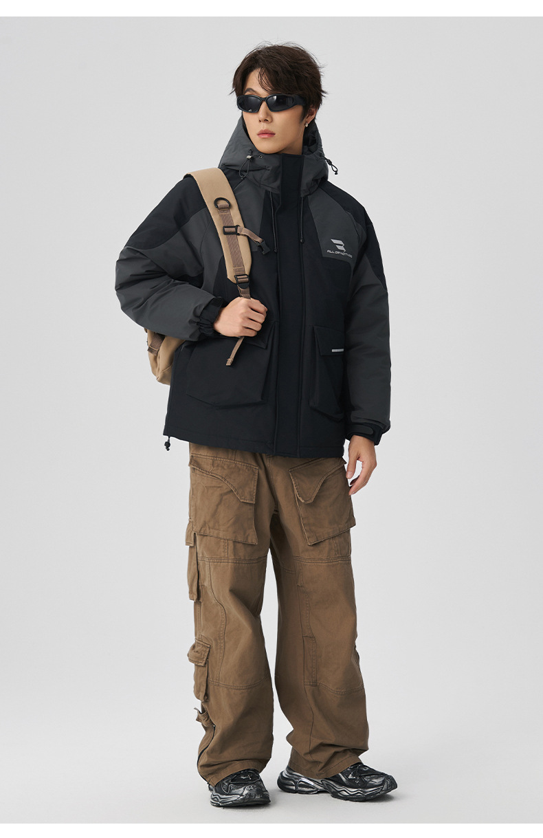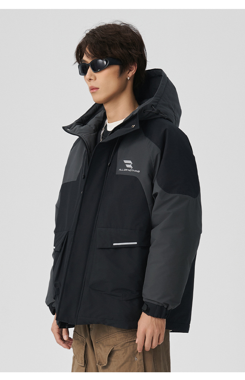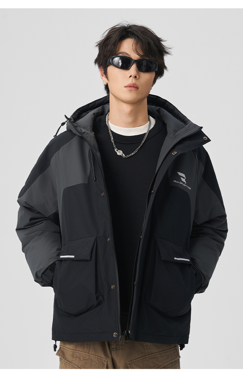 厂家直销男士加厚宽松羽绒服,长款防寒黑色外套,冬季休闲,防风防水,适合青少年穿着
