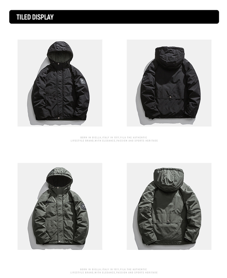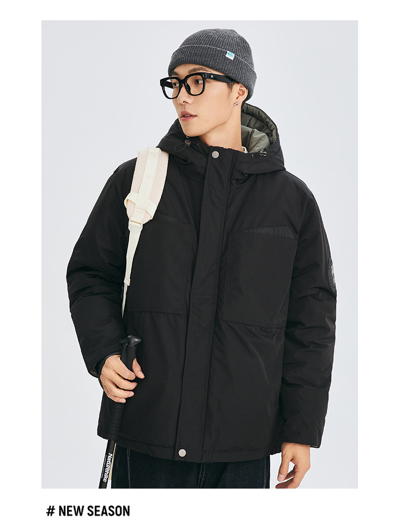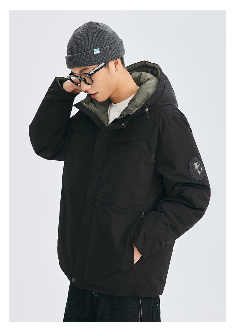 厂家直销男士冬季加厚连帽工装外套,合体型,青春流行风格,多口袋设计,适合日常穿着