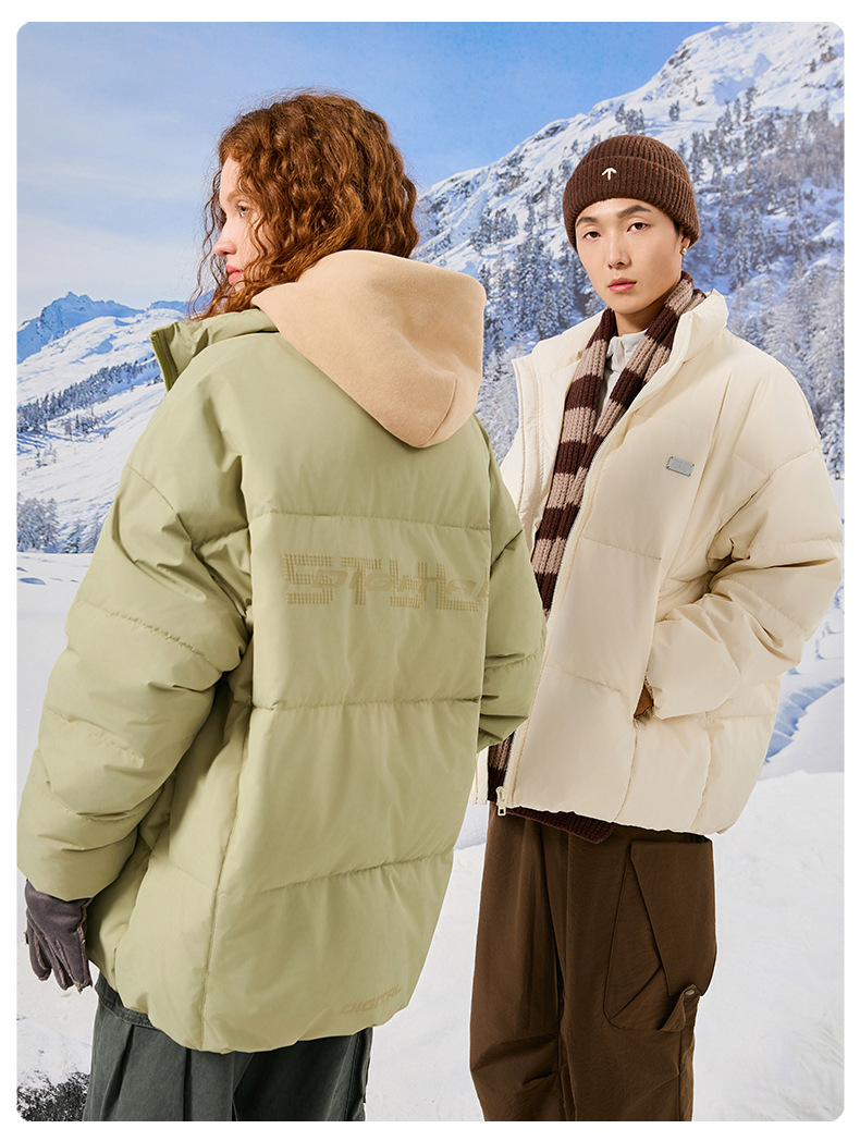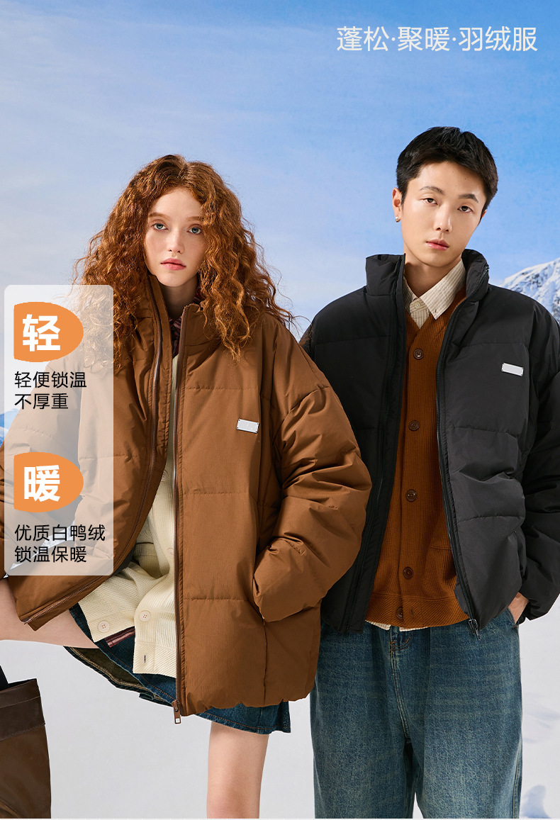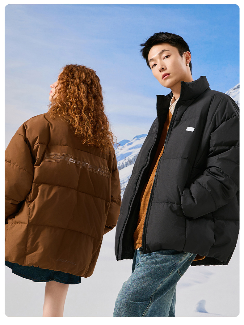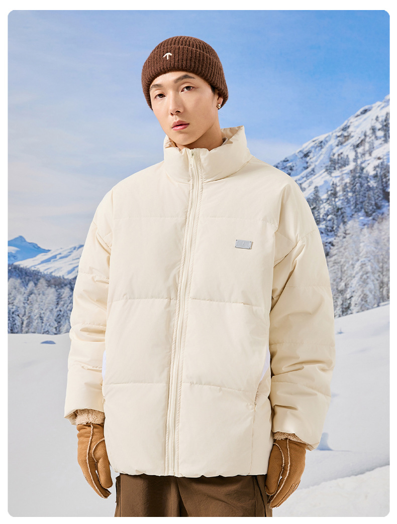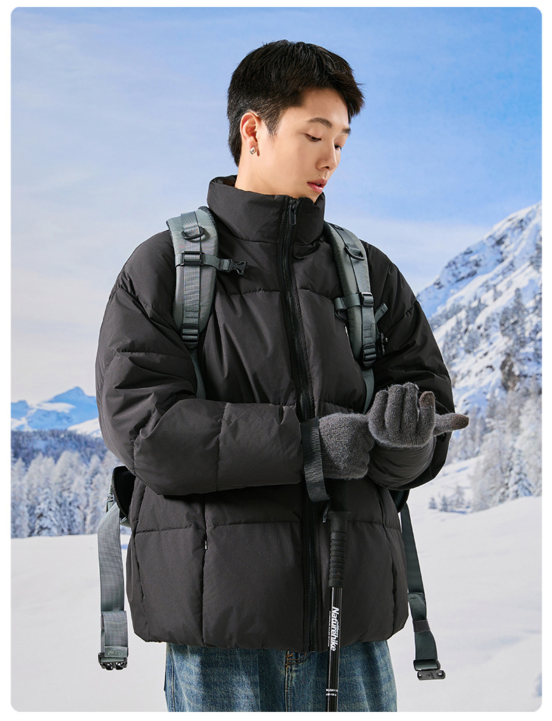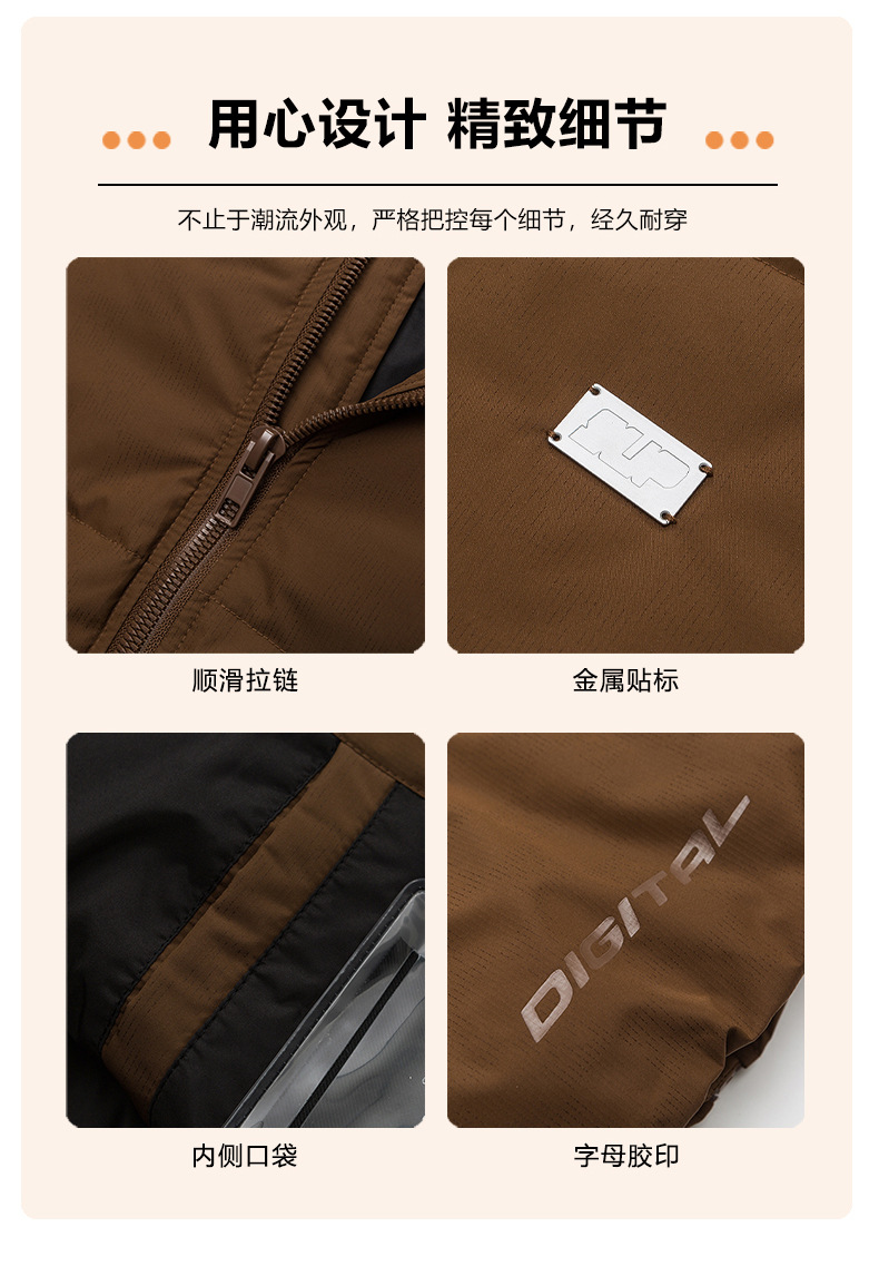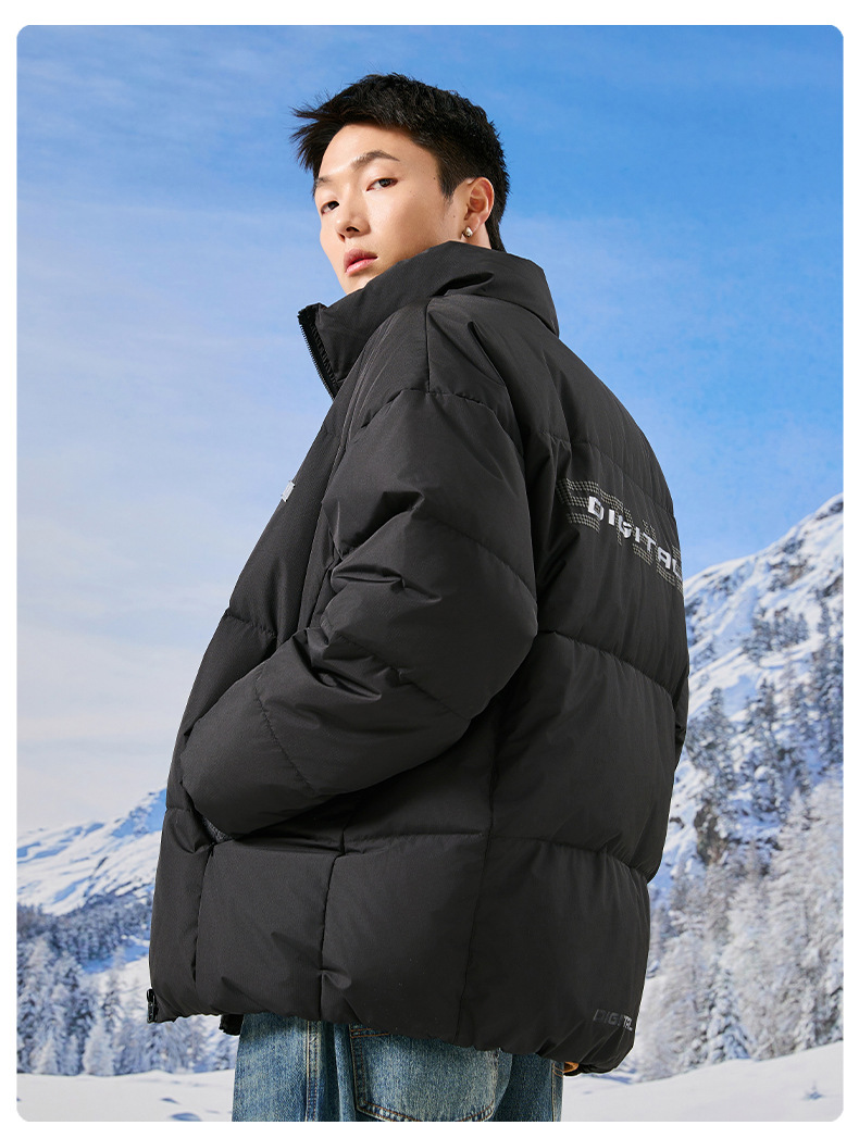 厂家直销青年男士加厚防风羽绒服宽松型,简约设计休闲风格,适合冬季多口袋时尚外套