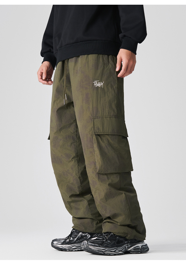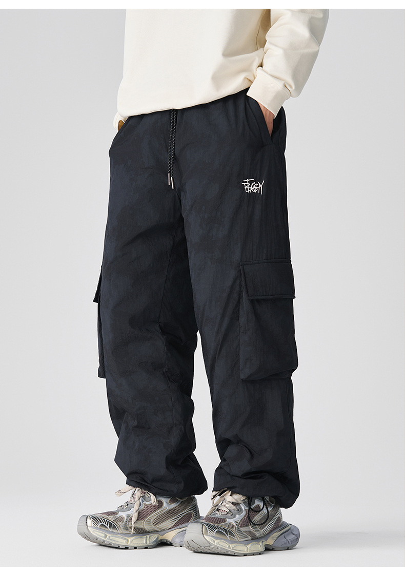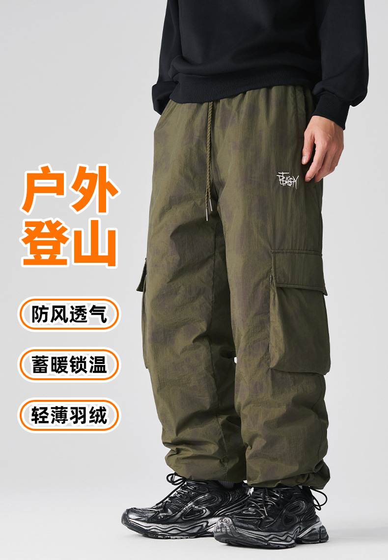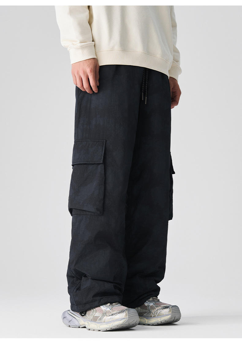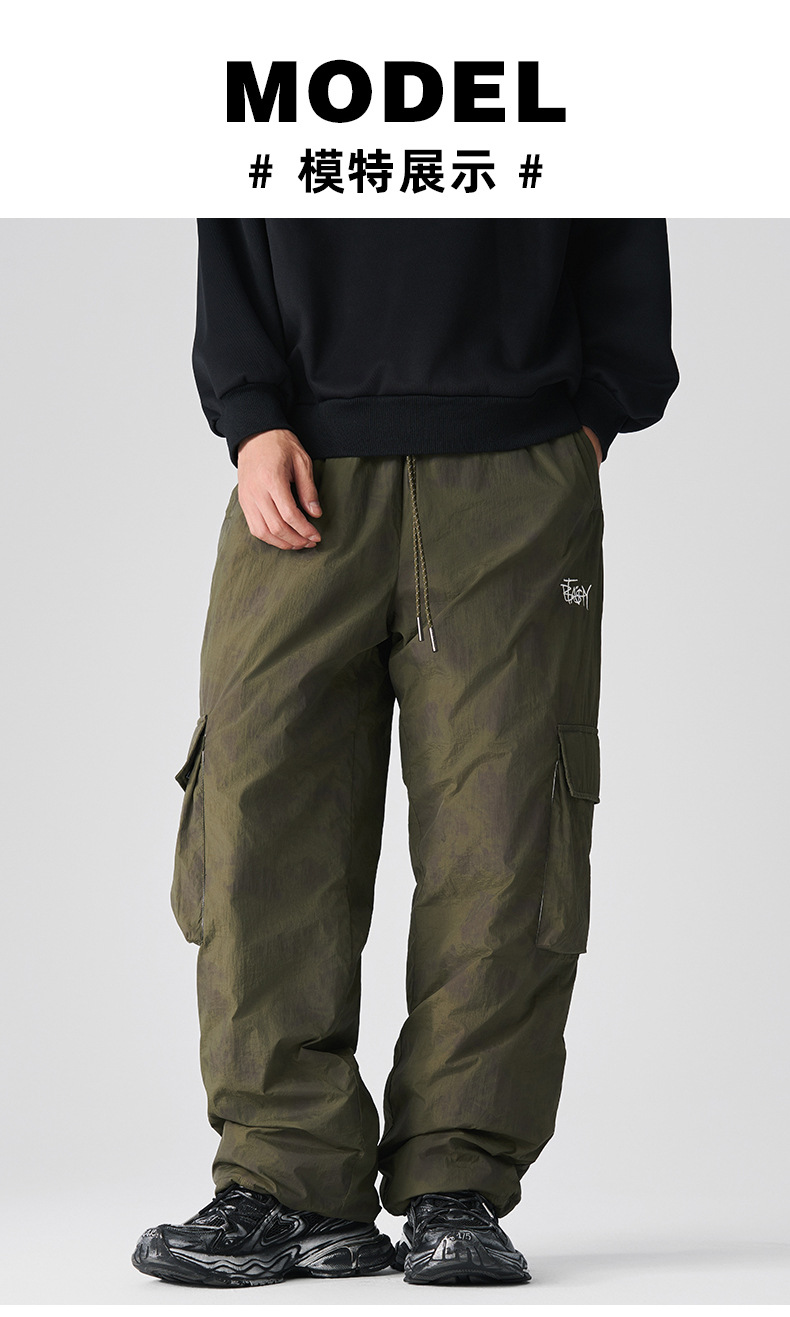 厂家直销男士宽松加厚多口袋工装裤,冬季休闲风格,美式复古直筒型