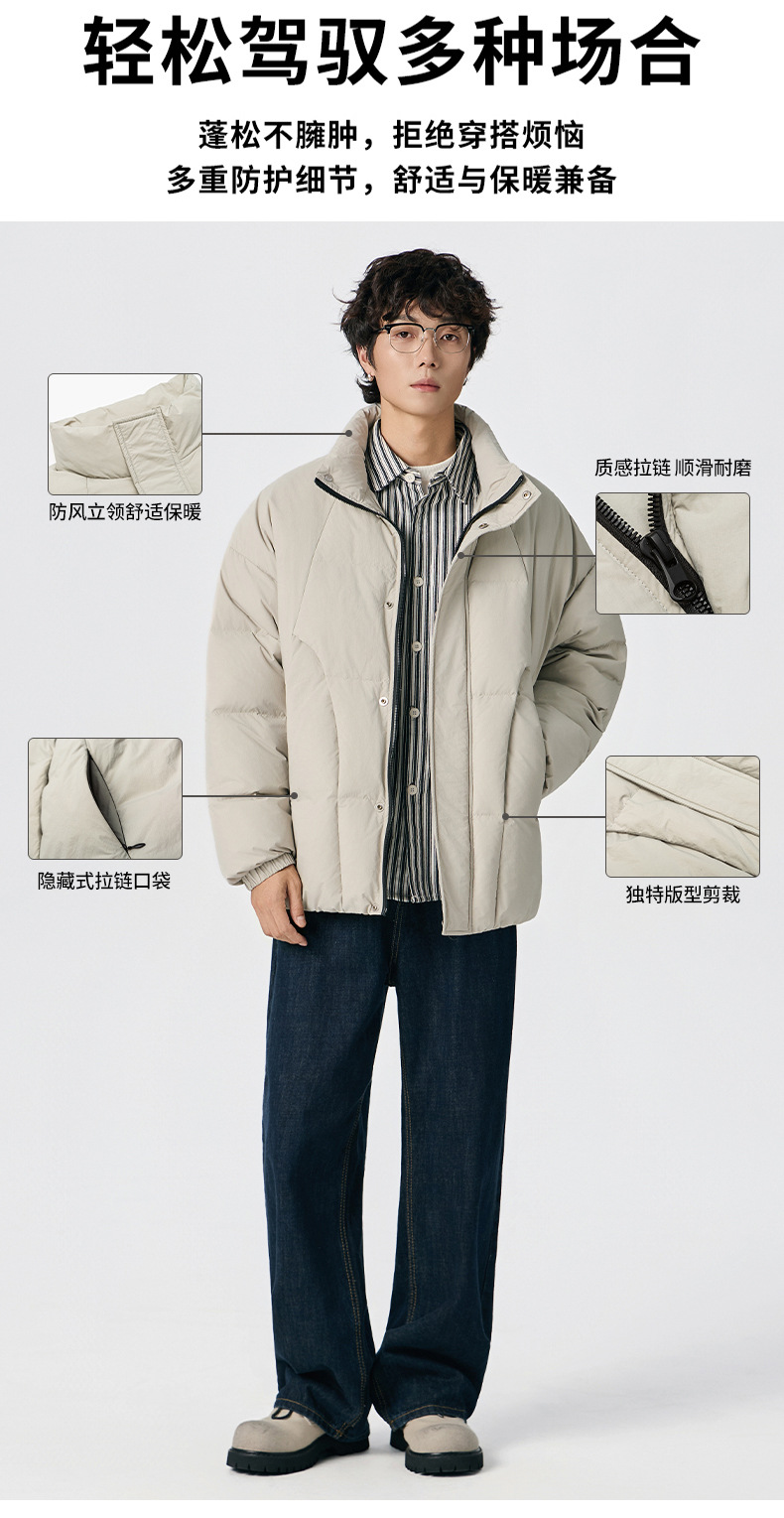 厂家直销青少年宽松加厚防风牛仔外套,冬季休闲,白鸭绒保暖面料