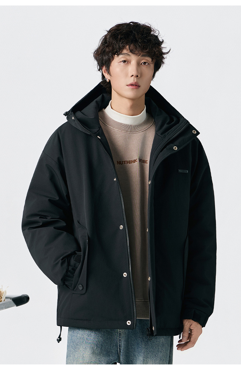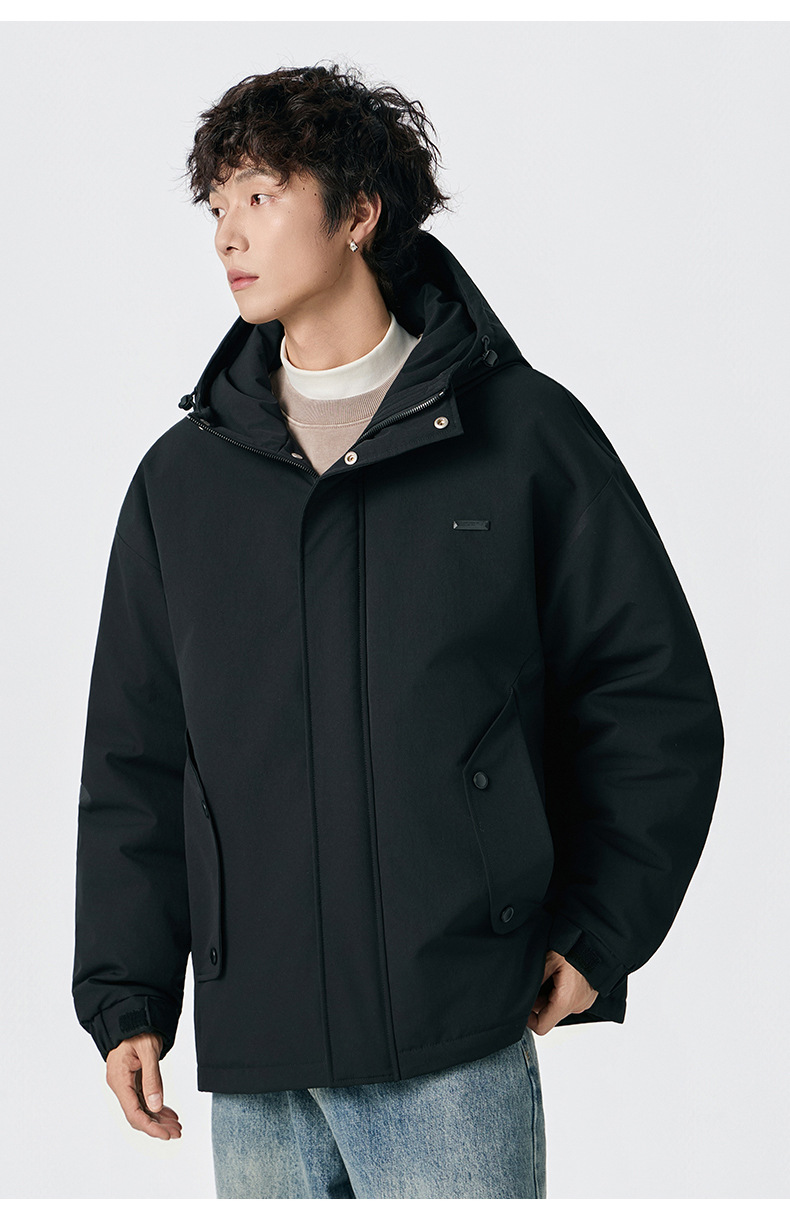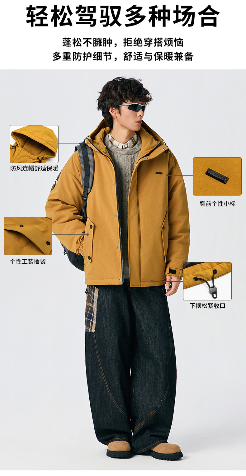 厂家直销男士宽松加厚白鸭绒牛仔外套,冬季休闲风格,防寒抗风设计